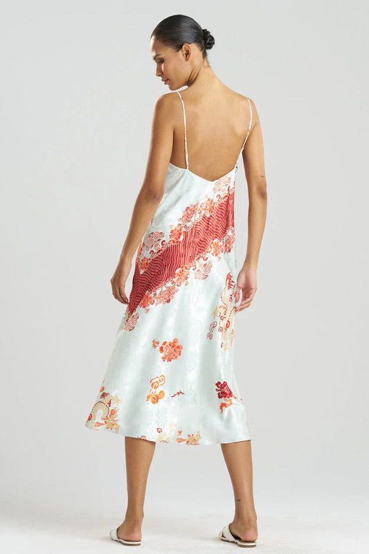 NATORI Imperial Dragon Jacquard Slip Dress - Light Aqua