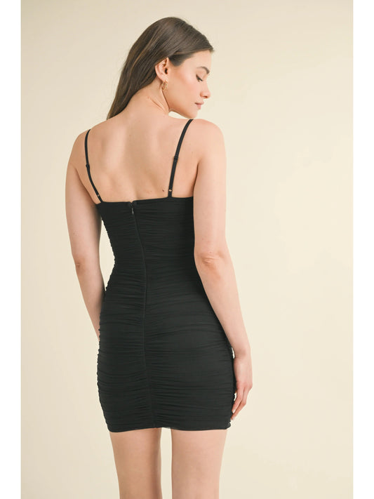 Ruby & Jenna Women's Mesh Ruched Mini Dress