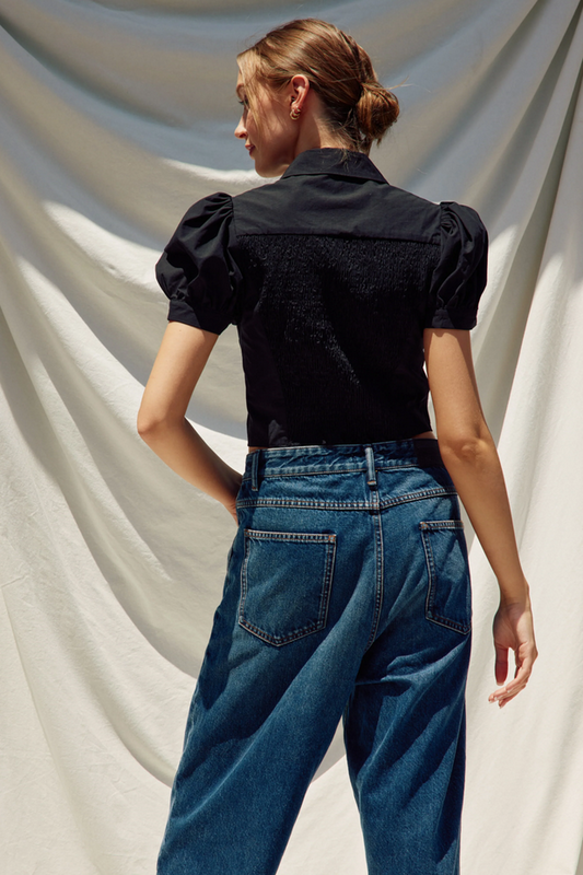 Ruby & Jenna Women's Puff Sleeve Short Top
