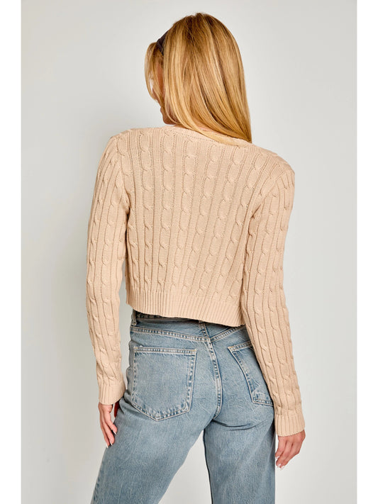 Ruby & Jenna Women's Round Neck Cropped Cable Sweater Cardigan