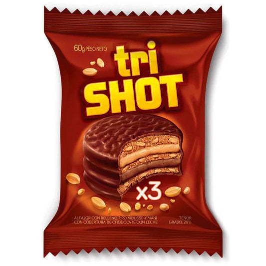 Pampa Direct Trishot Triple Alfajor with Peanut Butter and Chocolate Mousse, 60 g / 2.1 oz (pack of 6)