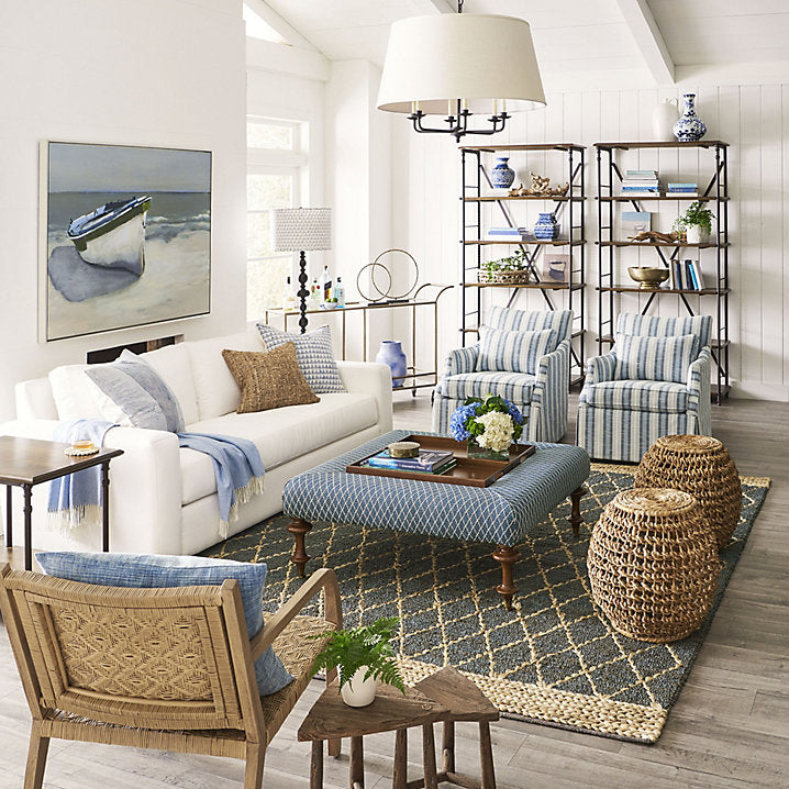 Organic texture to warm and lighten any space. Our Peyton Wood Floor Lamp is intricately carved of solid mango wood with three sizes of ring-and-ball turnings and hand finished to bring out every beautiful detail. Accentuate the unique look with your choice of 18" Drum Shade in White or Black.