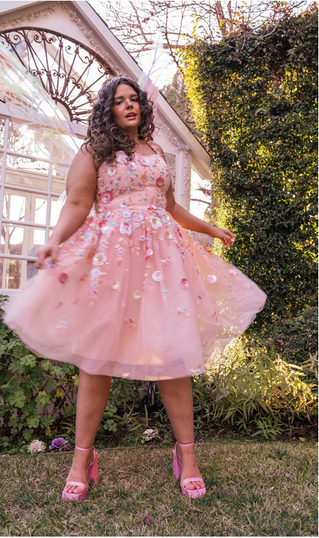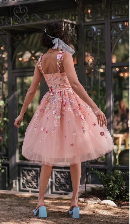 Embrace the magic, and let your inner fairy shine bright in this captivating creation. Features delicate floral embellishments that cascade along the bodice and skirt, creating an exquisite tapestry of petals and foliage. Available in an enchanting shade of teal and pink - allowing you to choose the color that resonates with your unique personality.