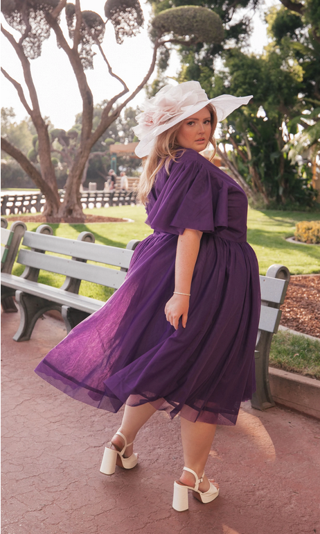 Introducing a captivating midi dress that combines playful elegance with a touch of whimsy. This charming ensemble features the vibrance of either pink or purple, designed to catch the eye and light up and room. The sweetheart neckline and flutter sleeves add a feminine flair, while the silhouette is perfect for twirling, making it ideal for spring gatherings or festive occasions. An expression of joy and free-flowing style, this dress is the perfect choice for sophisticated simplicity and for those who love to make a memorable entrance.