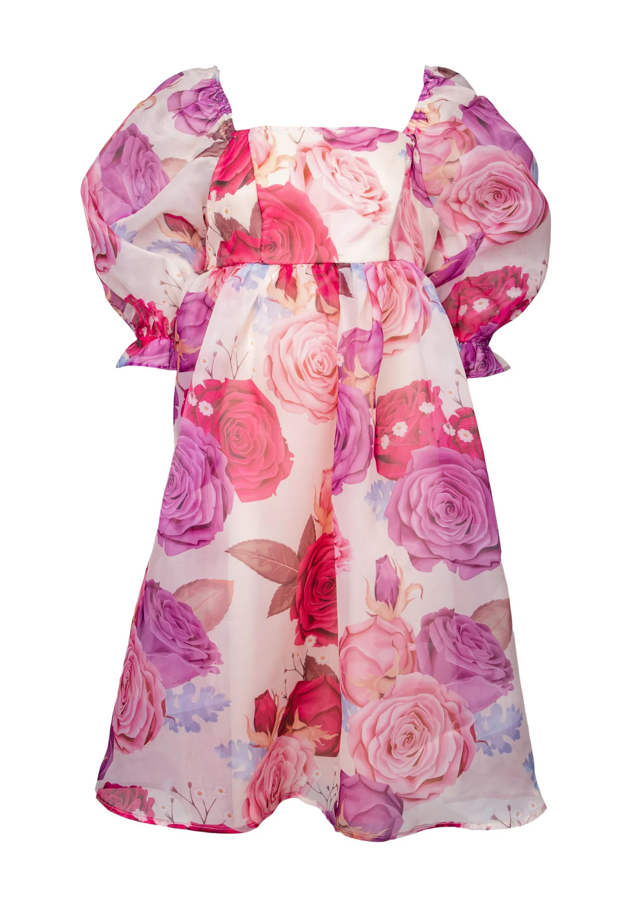 You'll look positively radiant in this rose floral print Polly mini babydoll dress. A flattering square neckline and hidden back zipper highlight the feminine shape, while elastic puff sleeves add a touch of whimsy to this modern silhouette.