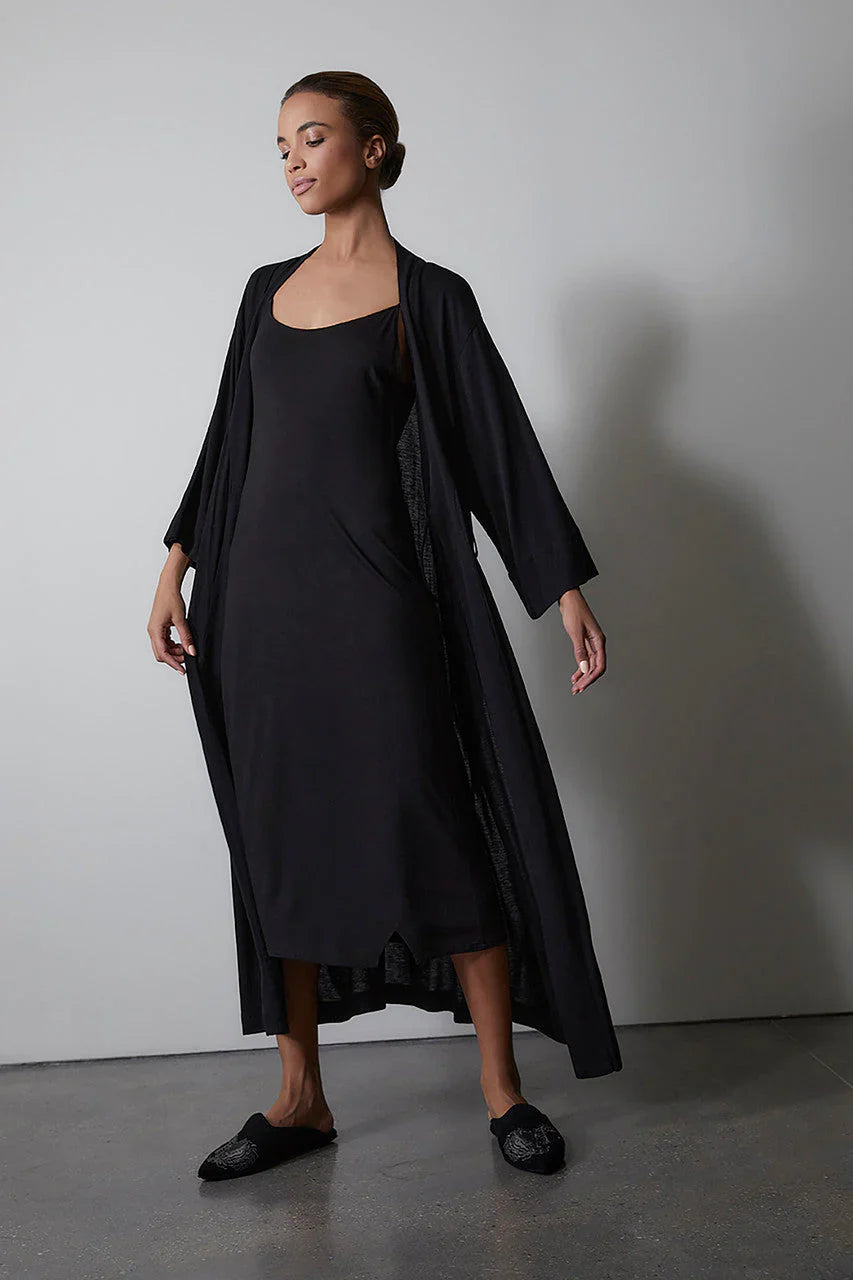 Natori Image Suede Dragon Embroidery Slide - Black Suede