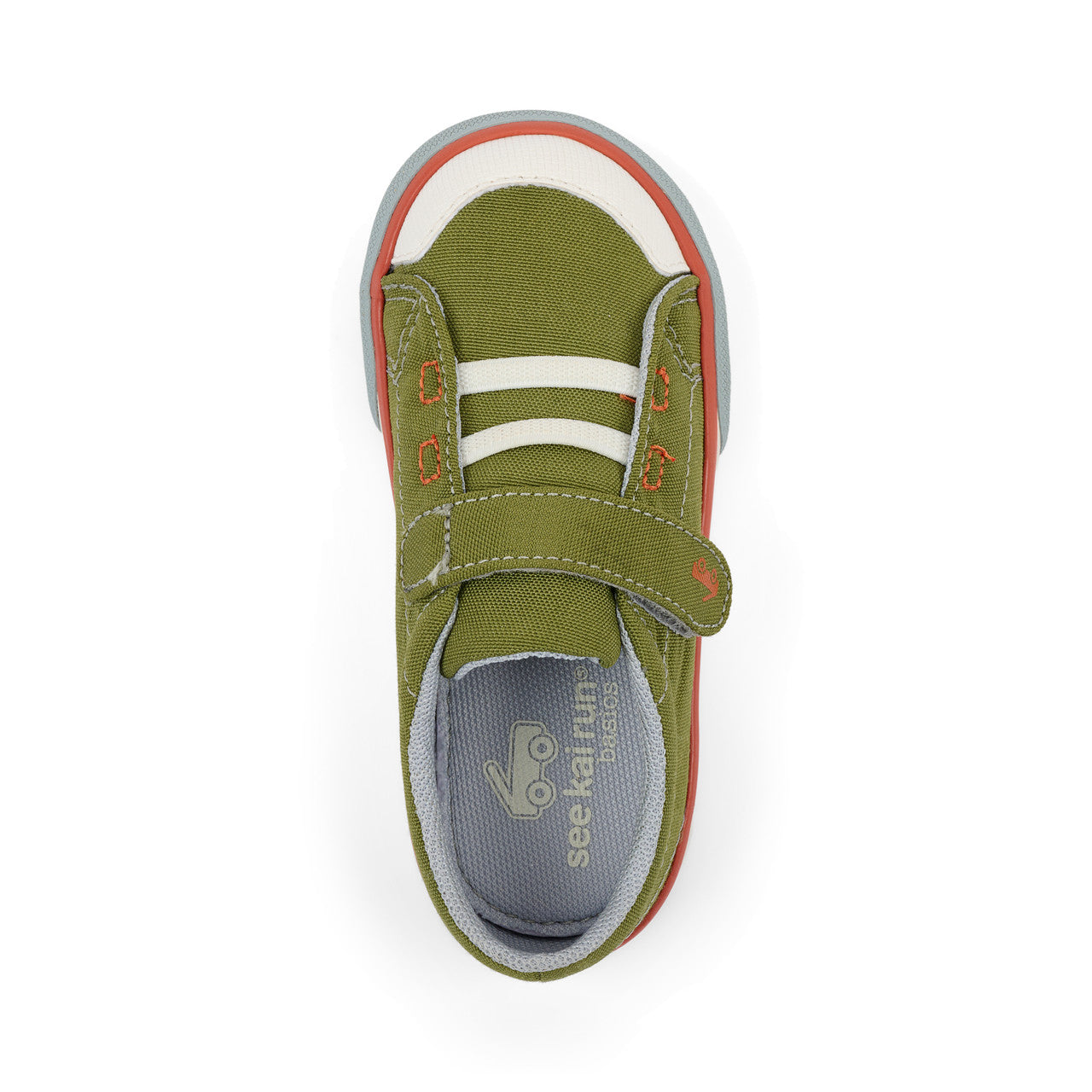 Get high-level performance with our new, fan-favorite Alex low-top sneaker. Featuring a sleek olive green design with multi-colored accents, the Alex has a durable rubber outsole and a protective rubberized toe cap. The adjustable hook-and-loop closure provides a snug fit, while the minimal lining design minimizes skin irritation for all-day play. Basics: Keeping fit simple.