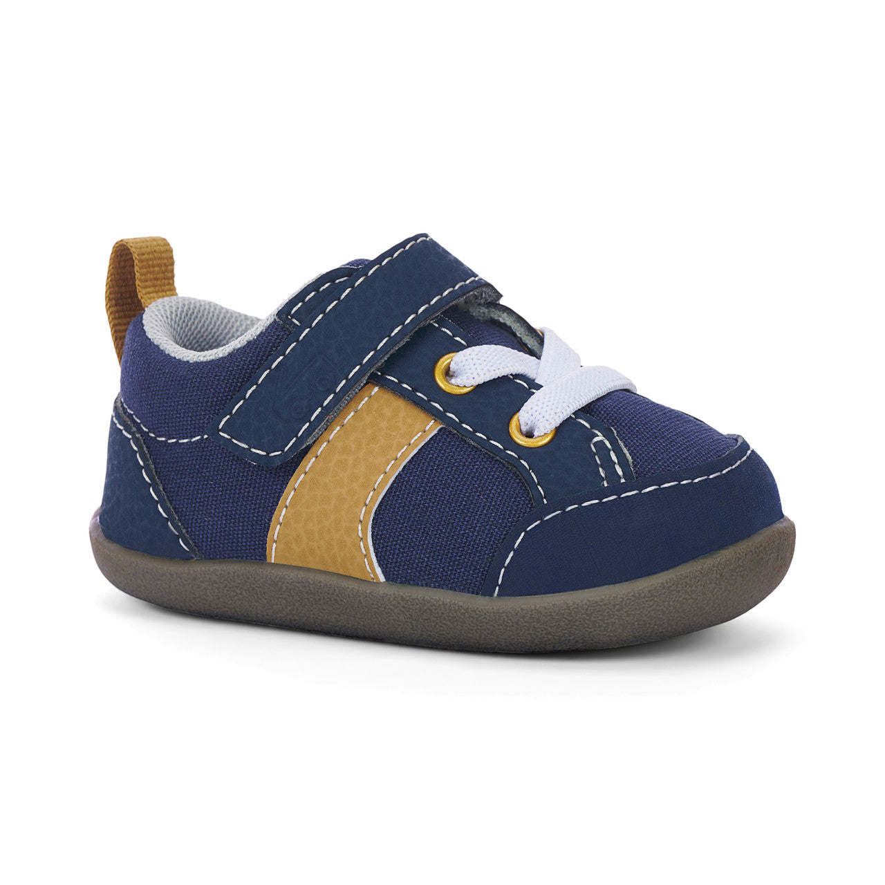 Recycled TPR rubber outsole provides flexibility, traction, and durability for early steps.