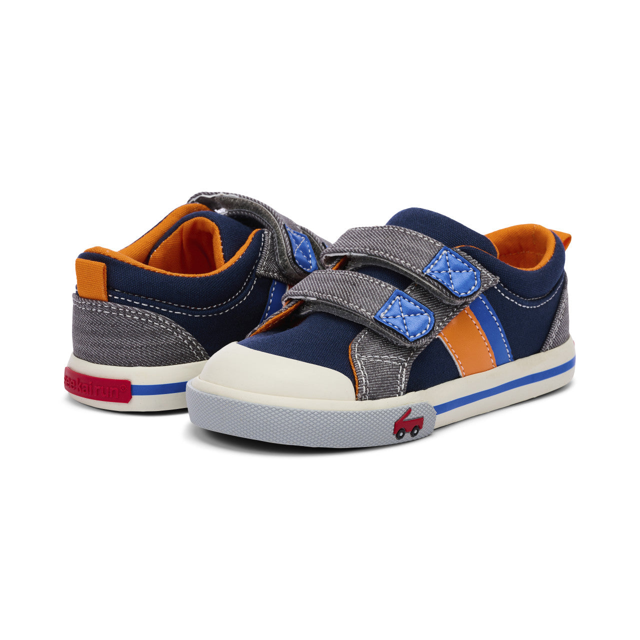 This sporty boys’ sneaker, accented with racing stripes, is ready for a day of new discoveries. Its double hook-and-loop closure and gripping outsole ensure a safe and secure fit.