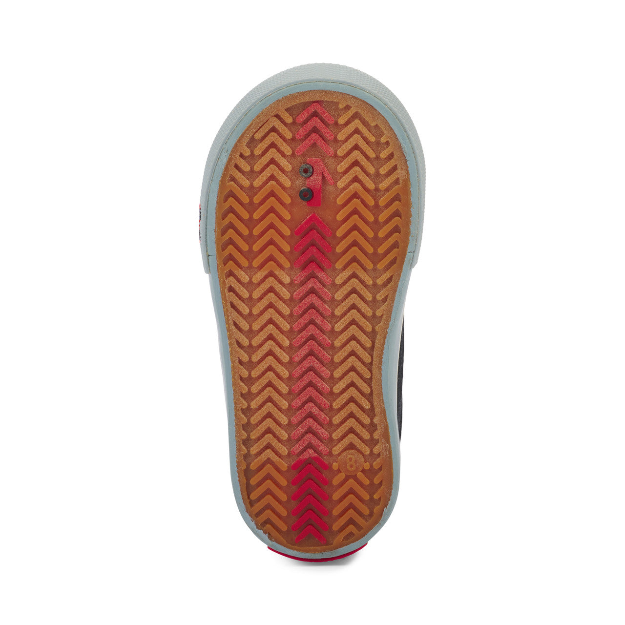 Natural rubber outsole with herringbone lug pattern provides great traction for play. Rubber toe cap adds protection.