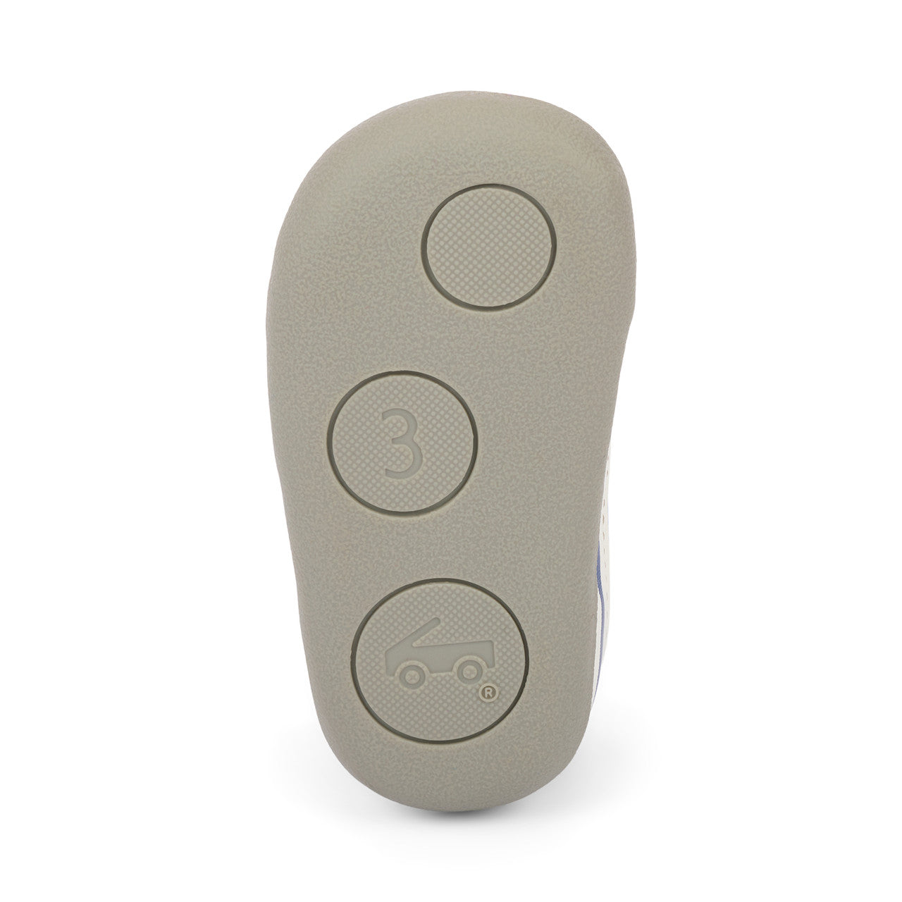 Recycled TPR full rubber outsole provides flexibility, traction, and durability for early steps.