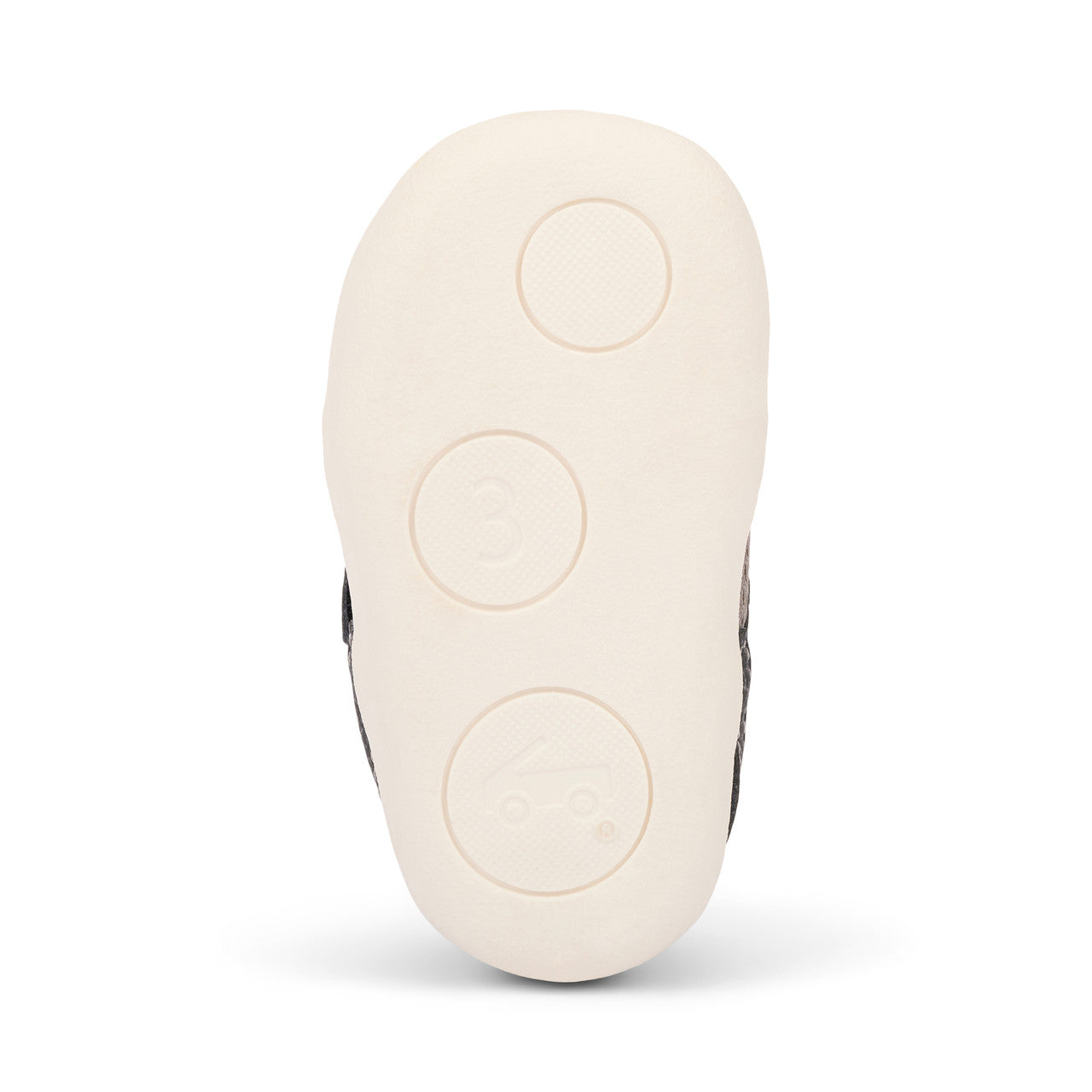 Recycled TPR full rubber outsole provides flexibility, traction, and durability for early steps.