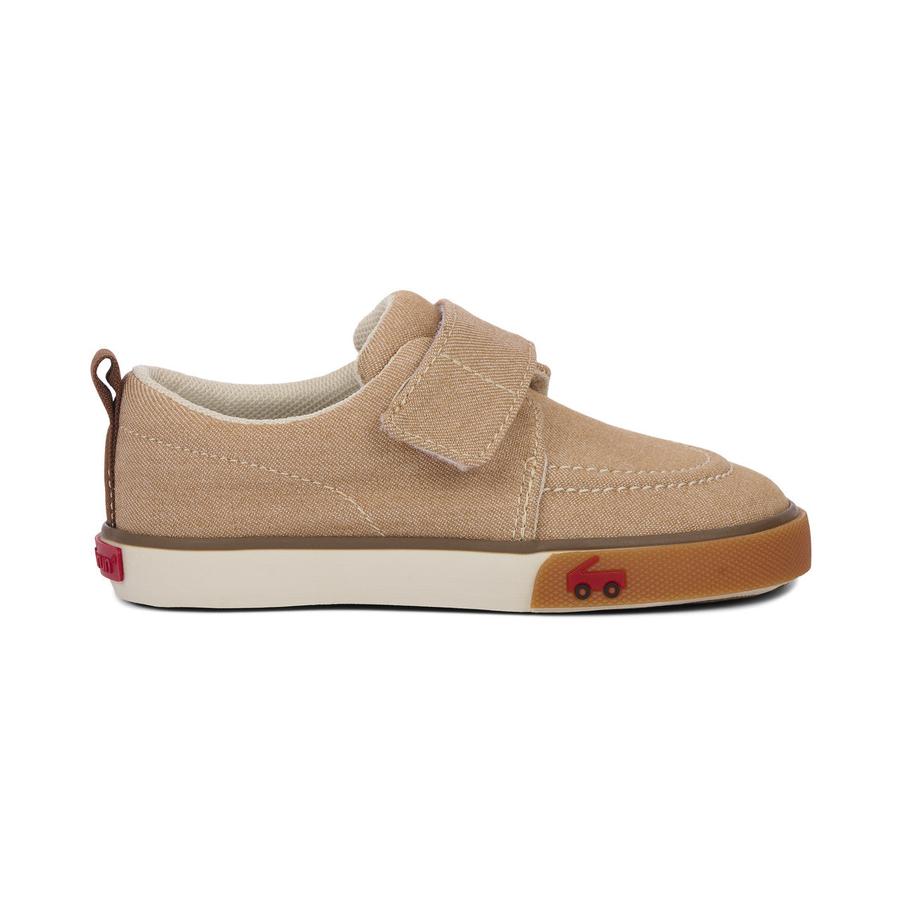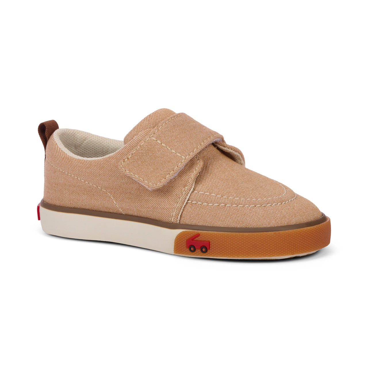 Keep things casual and cool with our Wyatt Khaki loafer sneaker. Featuring a durable sneaker outsole and pull tab for easy on. It includes a leather-lined removable molded footbed for happy feet, and a wide strap hook-and-loop closure for easy on/stays on.