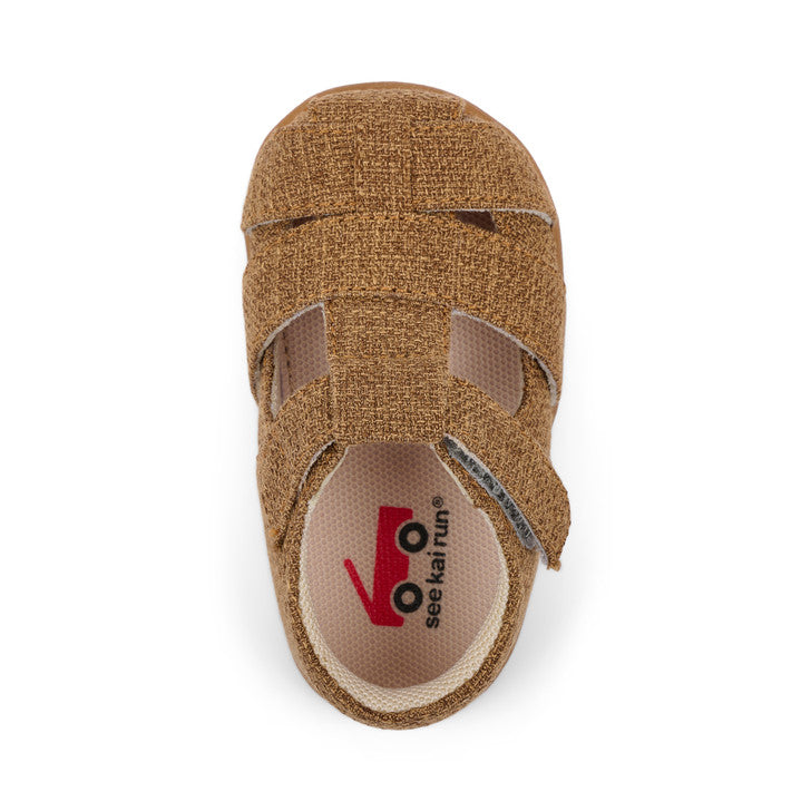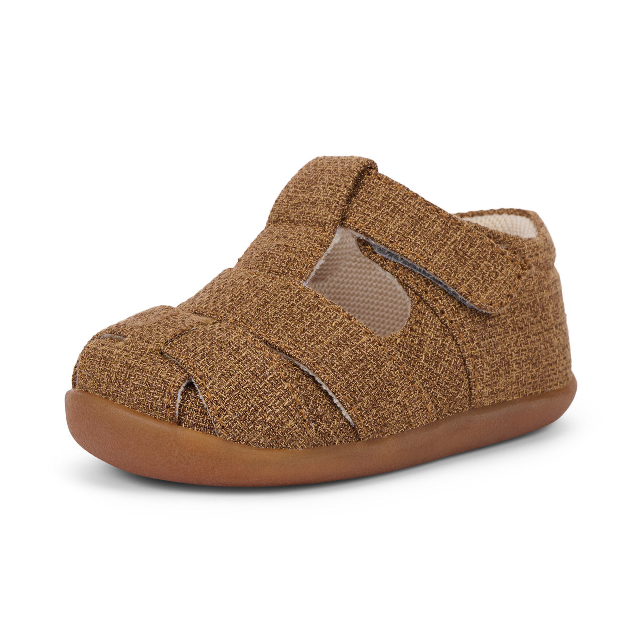 Recycled TPR full rubber outsole provides flexibility, traction, and durability for early steps.