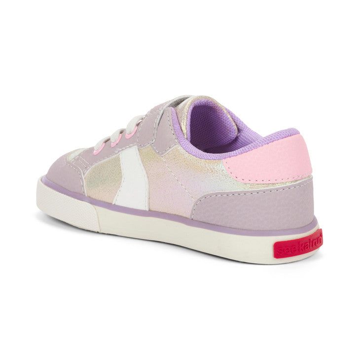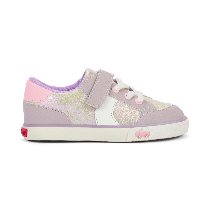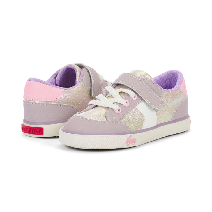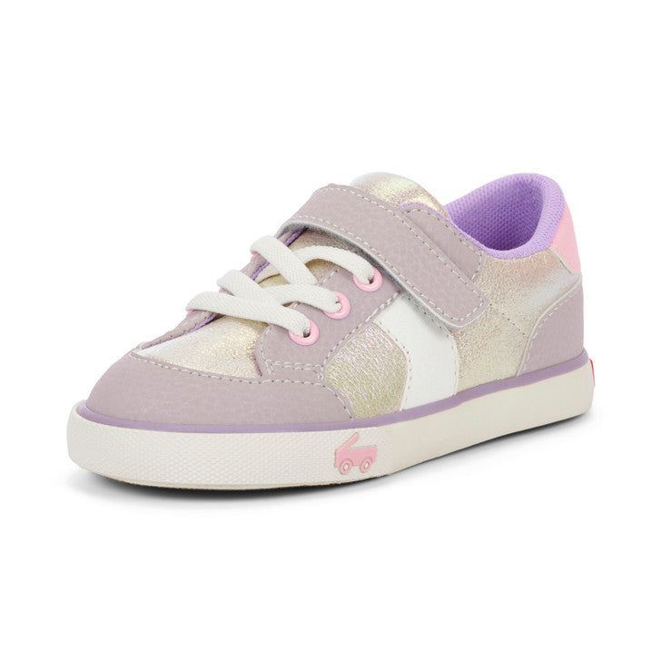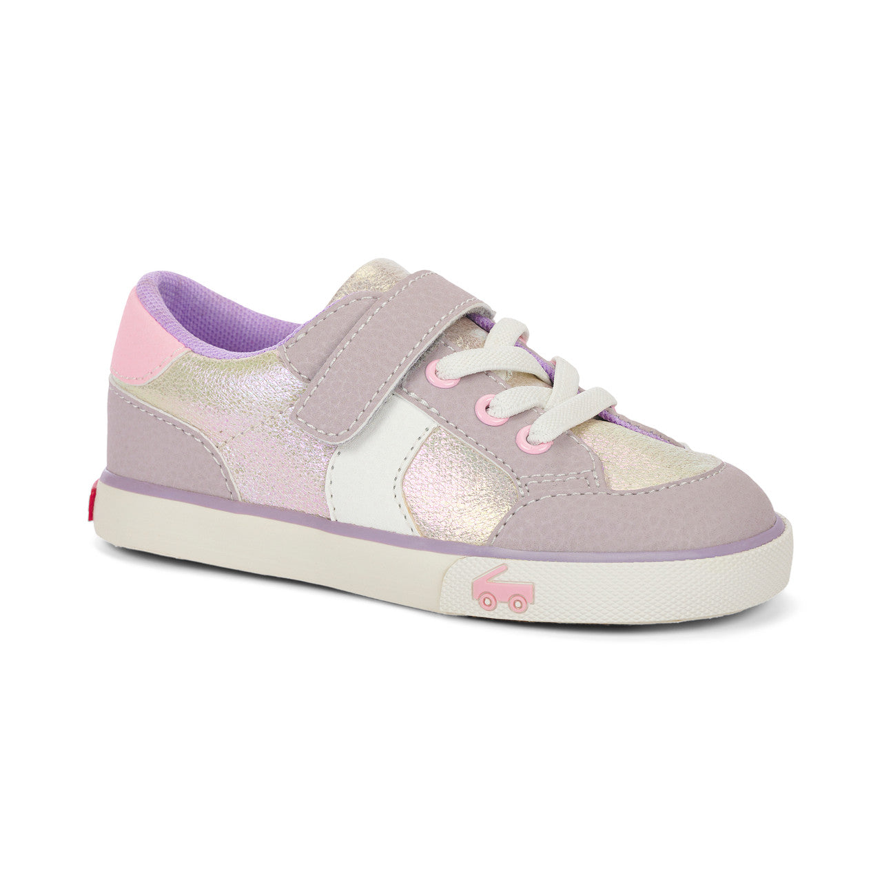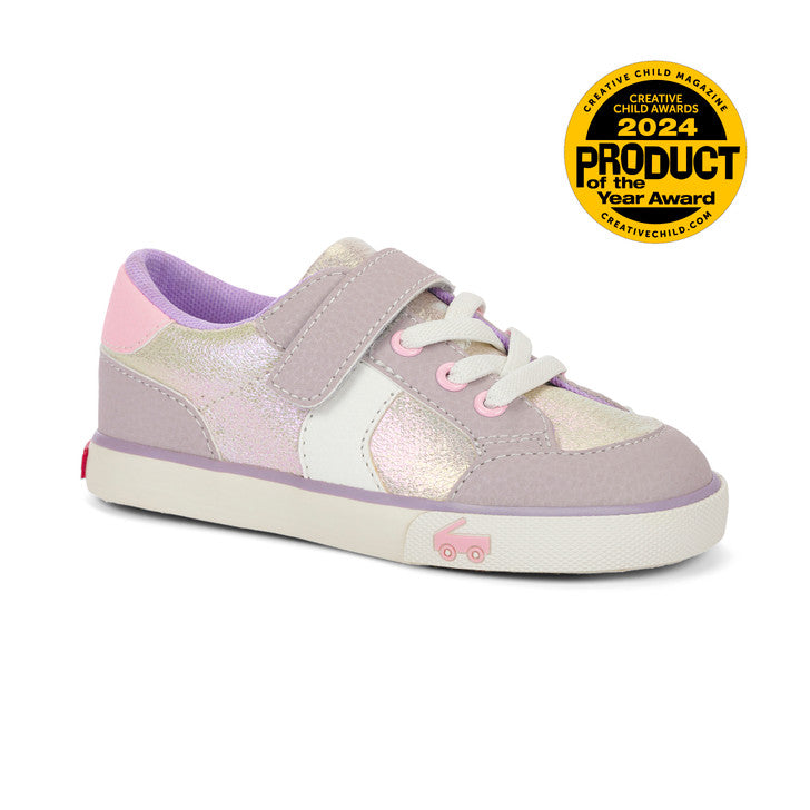 Score big in the Connor Gold. Retro court-inspired, this low top sneaker boasts a metallic upper with neutral PU nubuck overlays and playful pink accents. Elastic crisscross laces make it easy to slip on, while a 100% leather-lined footbed and lightweight, flexible design keep feet comfy all day.