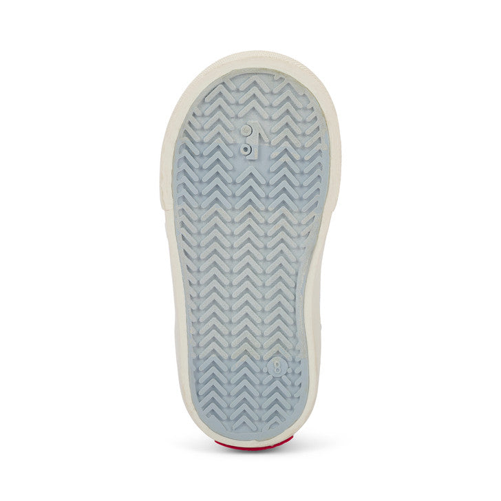 Natural rubber outsole with herringbone lug pattern provides great traction for play.