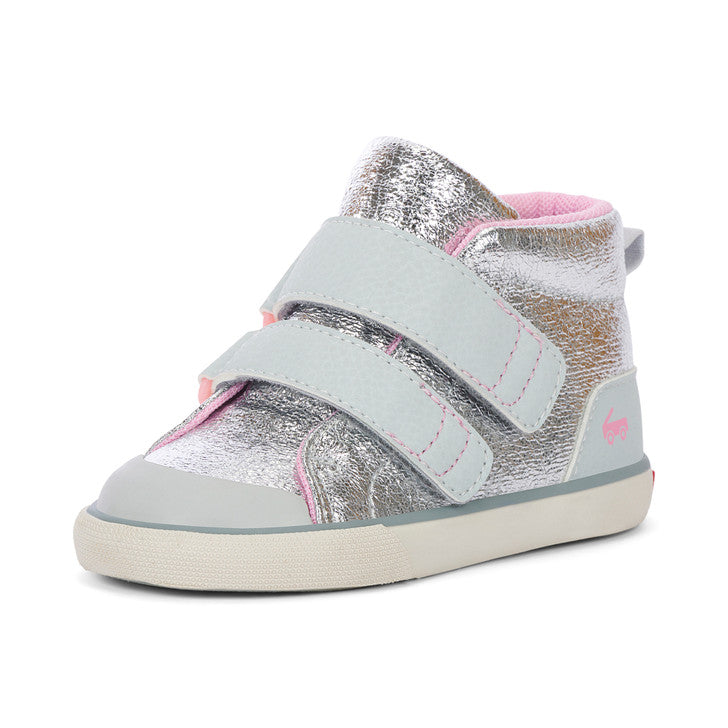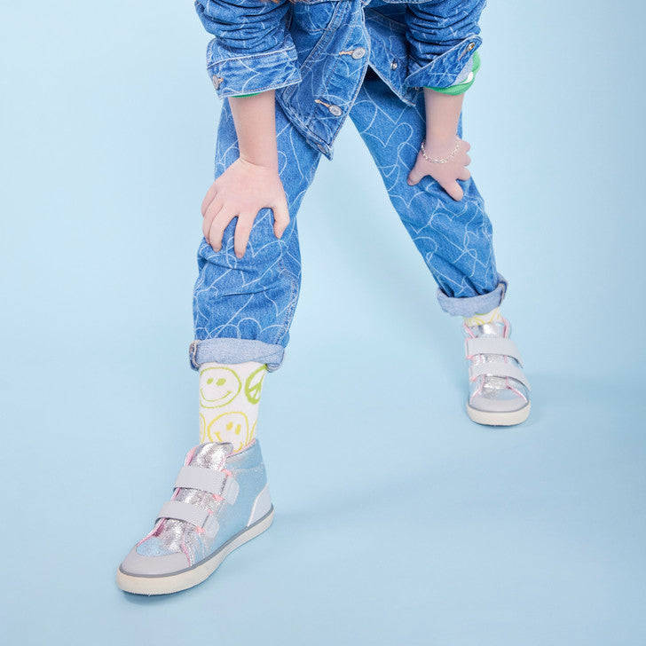 A high top that adapts to their every need, Dean is our best-selling sneaker that’s expertly engineered to accommodate AFOs, SMOs, and custom insoles. Shimmering silver adds star power to the innovative design, featuring extra-long customizable straps to fit around orthotics, a removable insole for added room, and an ultra-wide opening that stays open for effortless on-off. Sensory friendly and downright comfortable, Dean brings ease and style to wearing orthotics.