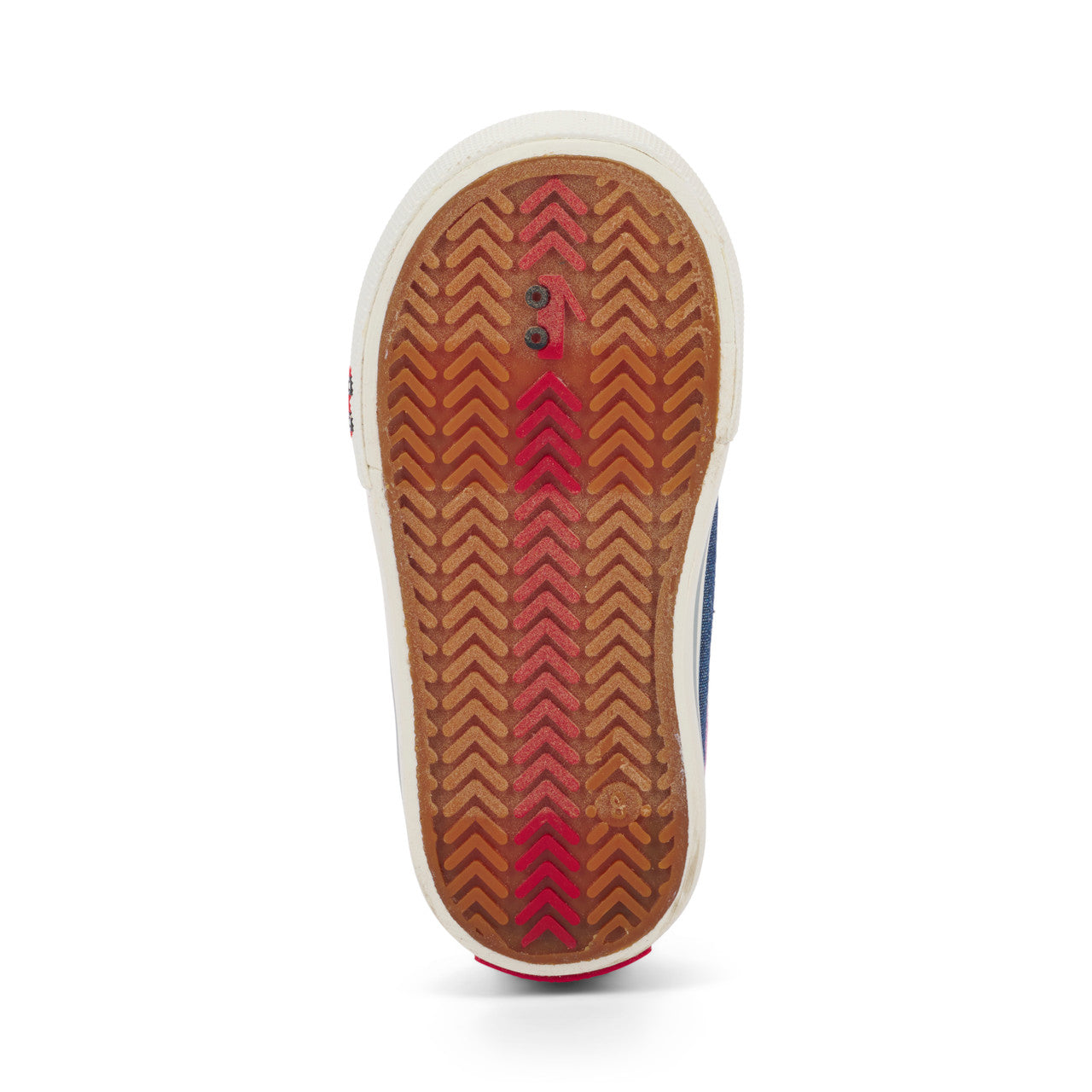 Natural rubber outsole with herringbone lug pattern provides great traction for play.