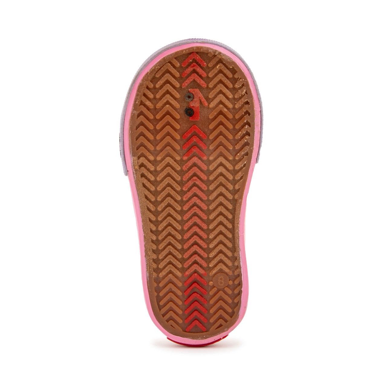 Natural rubber outsole with herringbone lug pattern provides great traction for play.