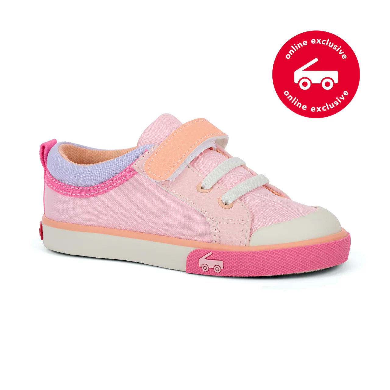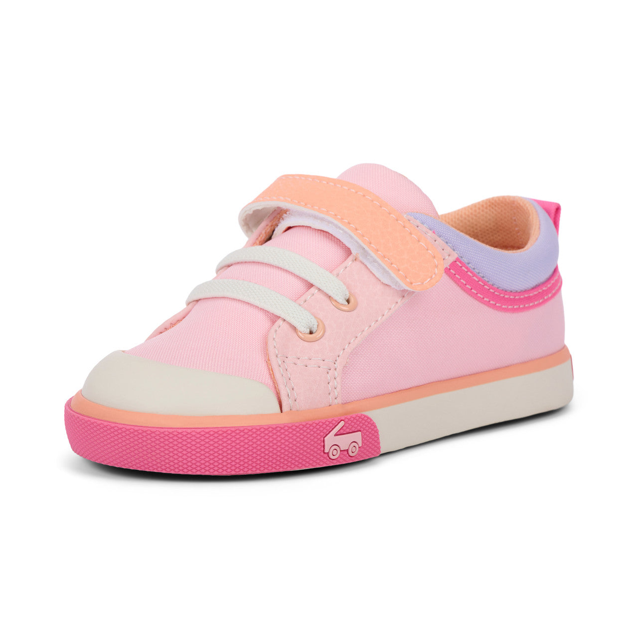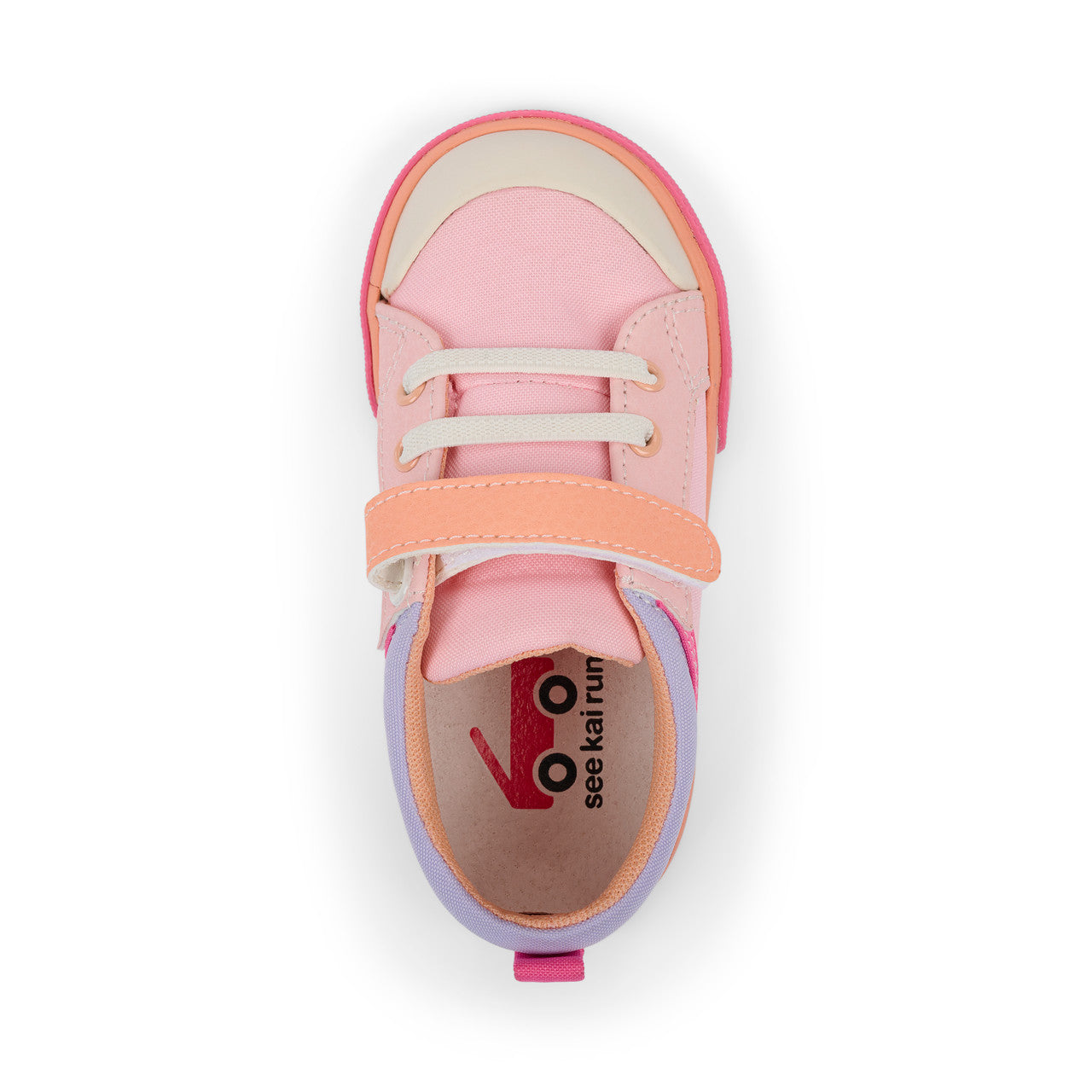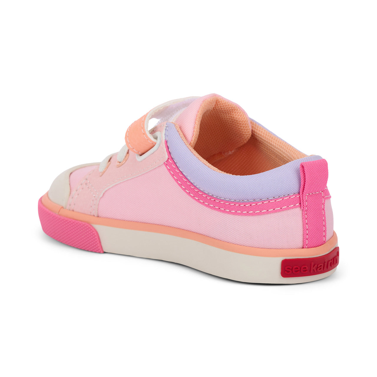 Our web-exclusive denim sneaker just got a fun update with a Light Pink upper with vibrant color pops of orange, purple and pink. The Kristin features a 100% leather-lined, detachable molded footbed for a comfortable foot environment. Plus, a natural rubber toe cap for extra safeguarding.