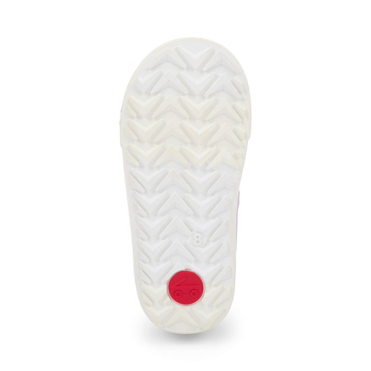 Natural rubber outsole with herringbone lug pattern provides great traction for play.