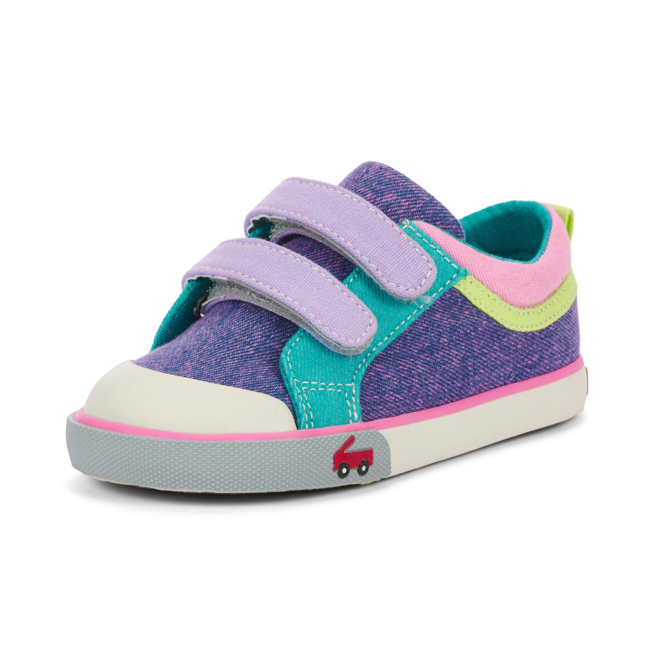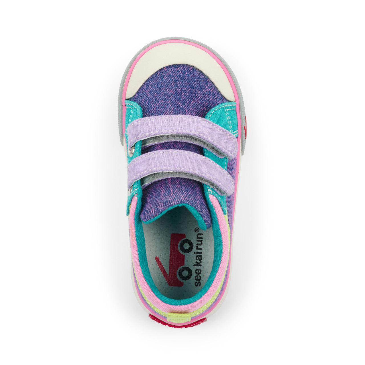 Get ready to rock with the Robyne Purple Denim! These double-strap vulcanized sneakers feature purple denim with pastel color pop overlays and sweet pink accents. Plus, they come with a 100% leather lined removable molded footbed to keep feet happy.