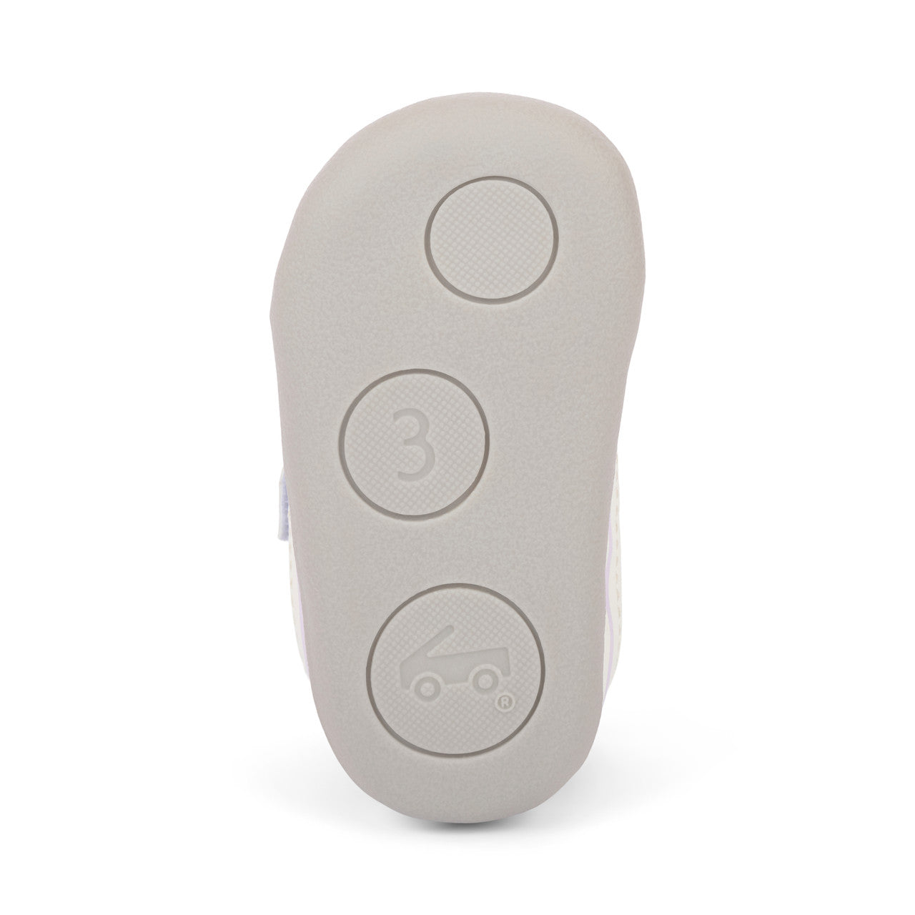Recycled TPR full rubber outsole provides flexibility, traction, and durability for early steps.