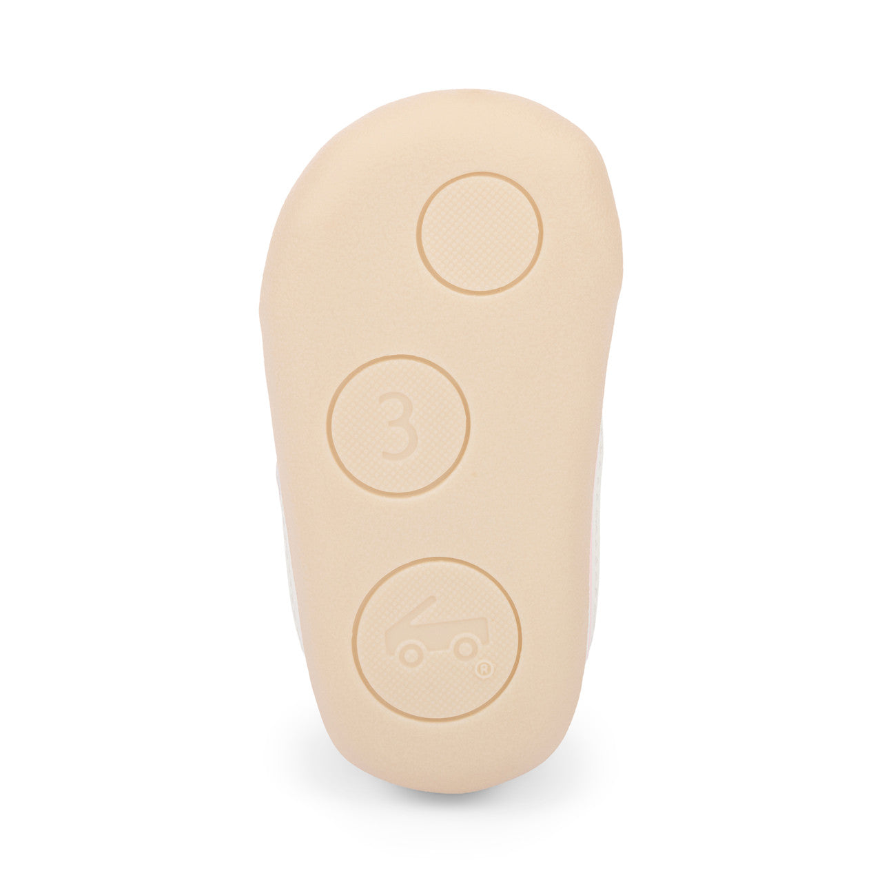 Recycled TPR full rubber outsole provides flexibility, traction, and durability for early steps.