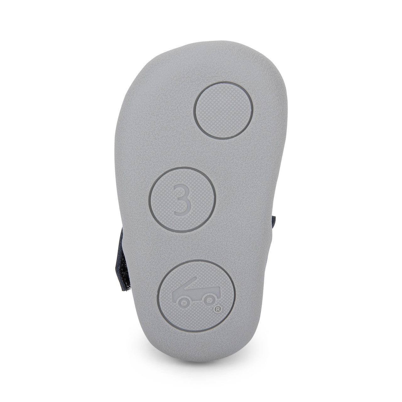 Full rubber outsole provides flexibility, traction, and durability for early steps