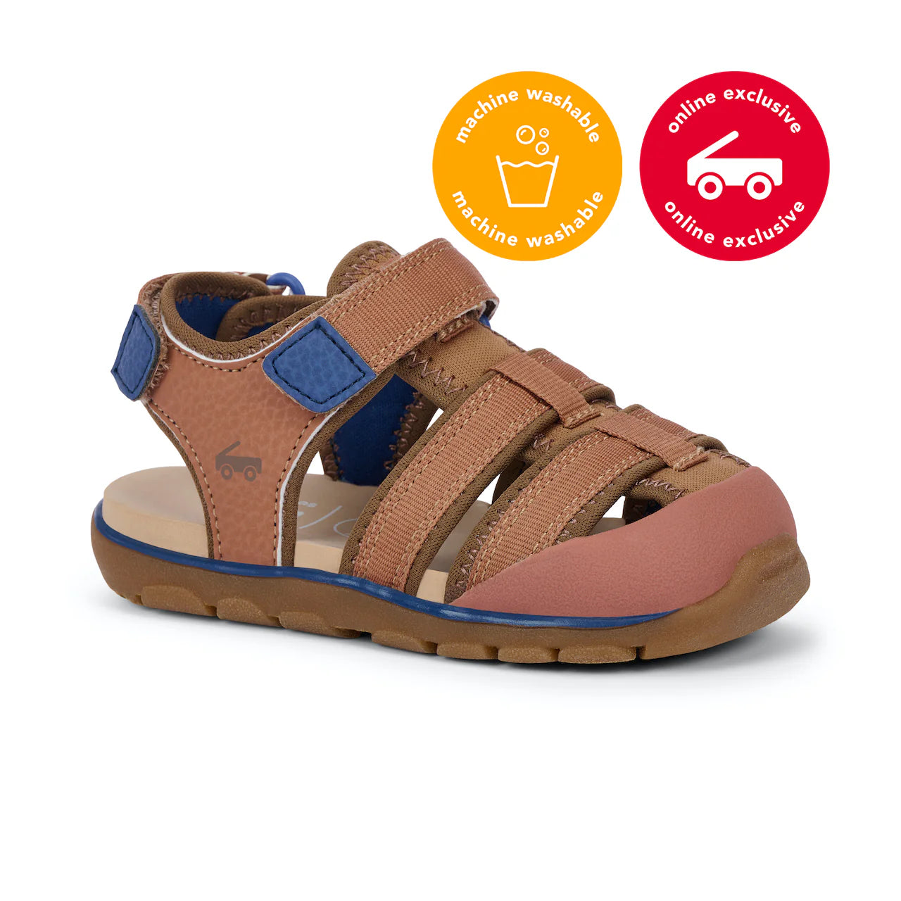 From poolside to water park, they’ll stay comfy and protected in the newly updated Wilder II. The flexible khaki brown upper and soft jersey binding make it ideal for all-day wear, while the non-slip rugged outsole keeps him safe during his aquatic adventures. Khaki Brown upper with water-friendly webbing straps and supportive faux leather heel.