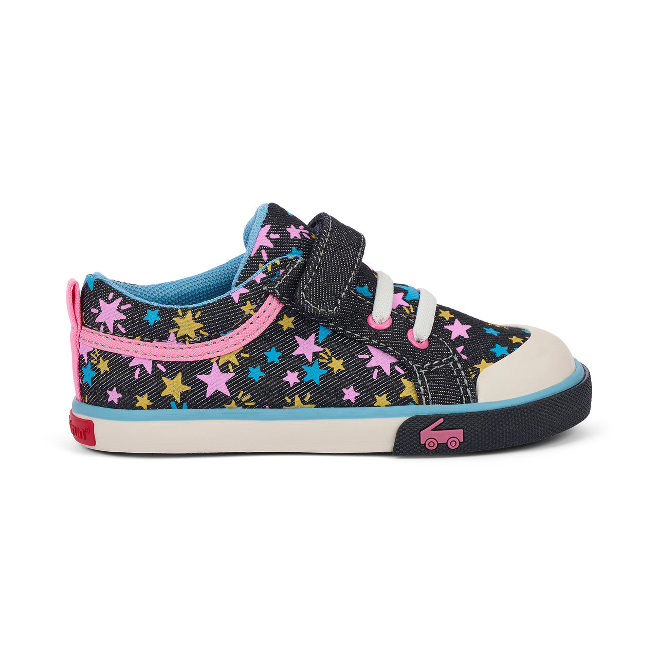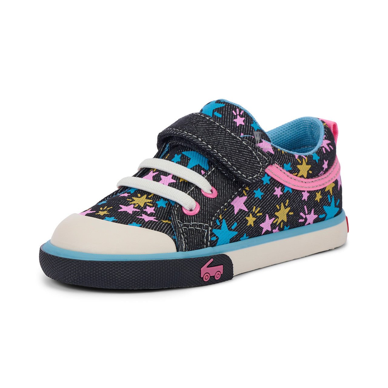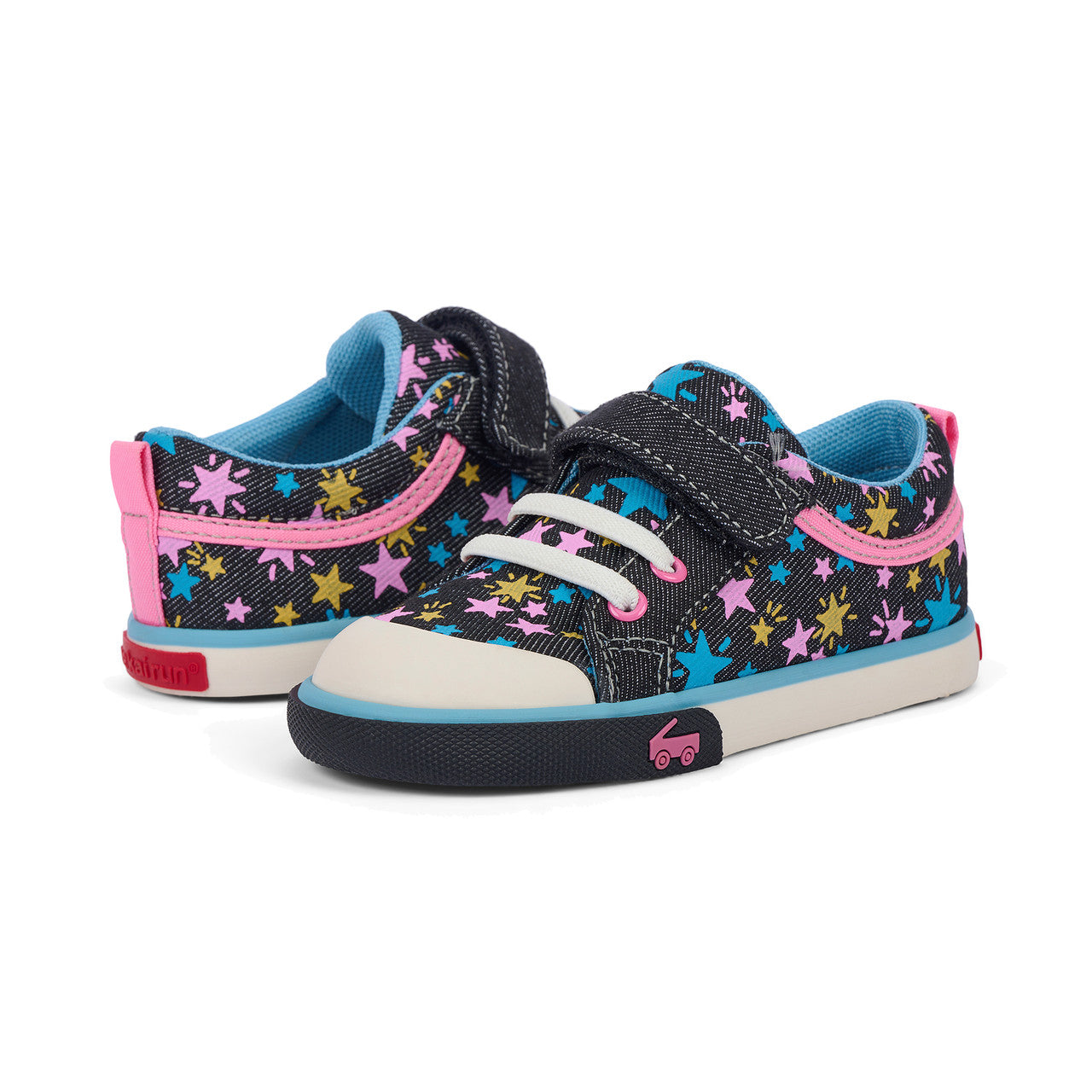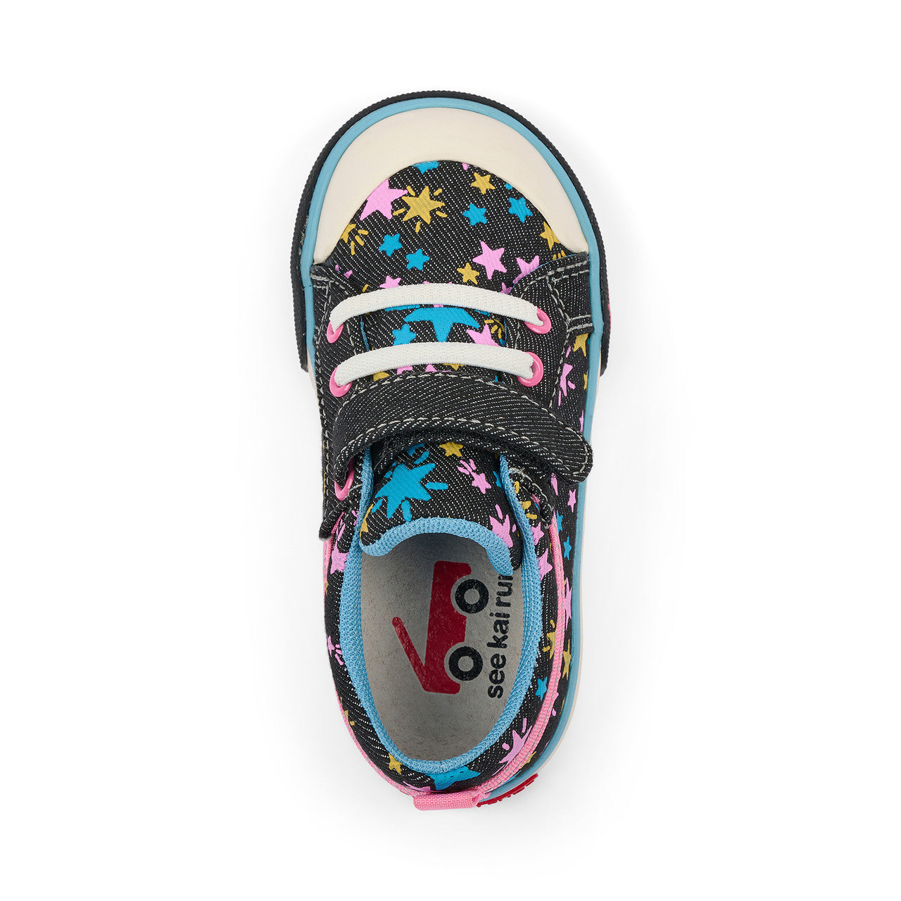 Unleash her inner star power with our classic Kristin sneaker, featuring colorful shooting stars on a black denim upper. Consciously designed to be lightweight and comfortable for all-day play with durability and protection where she needs it the most; it’s the ultimate go-to shoe.