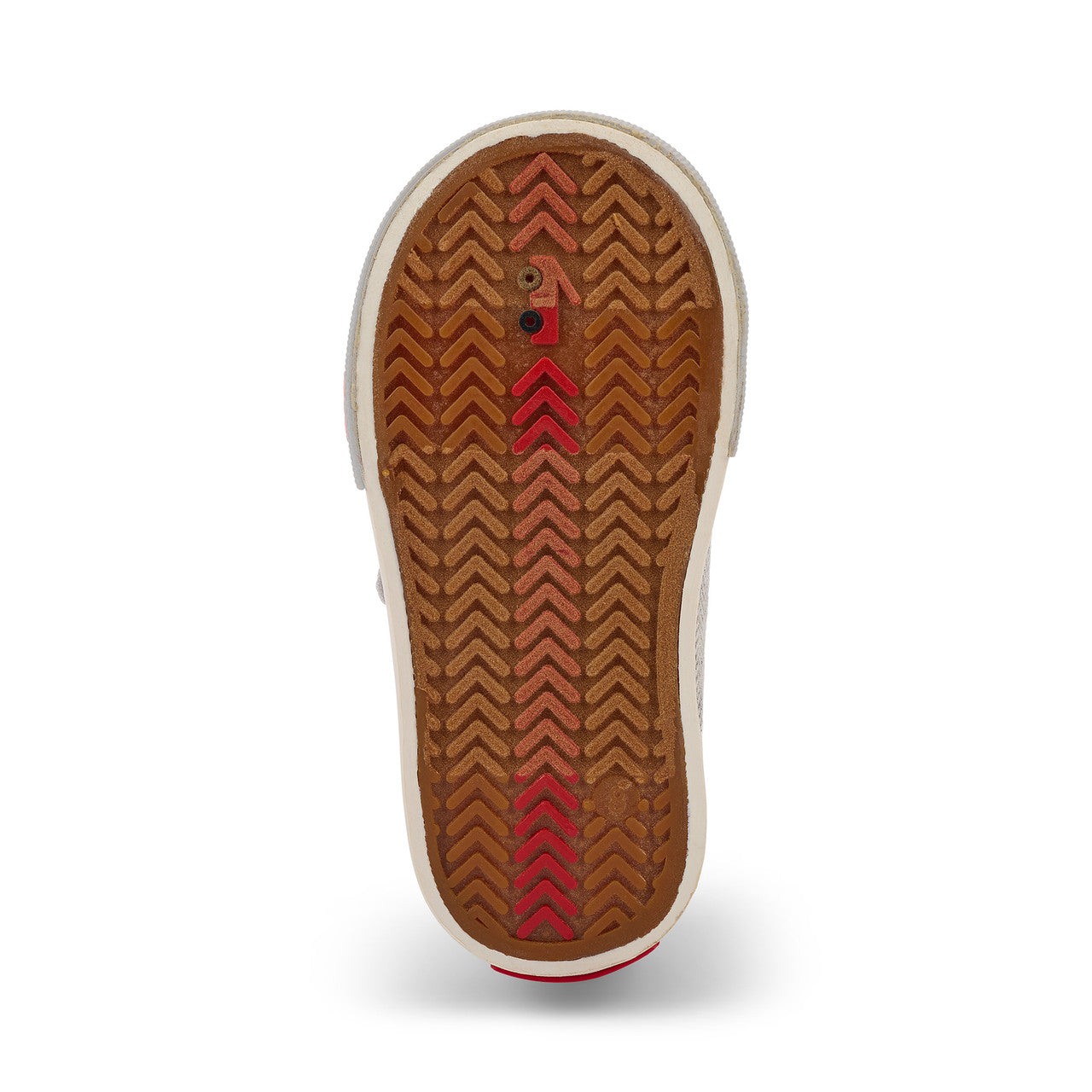 Natural rubber outsole with herringbone lug pattern provides great traction for play.