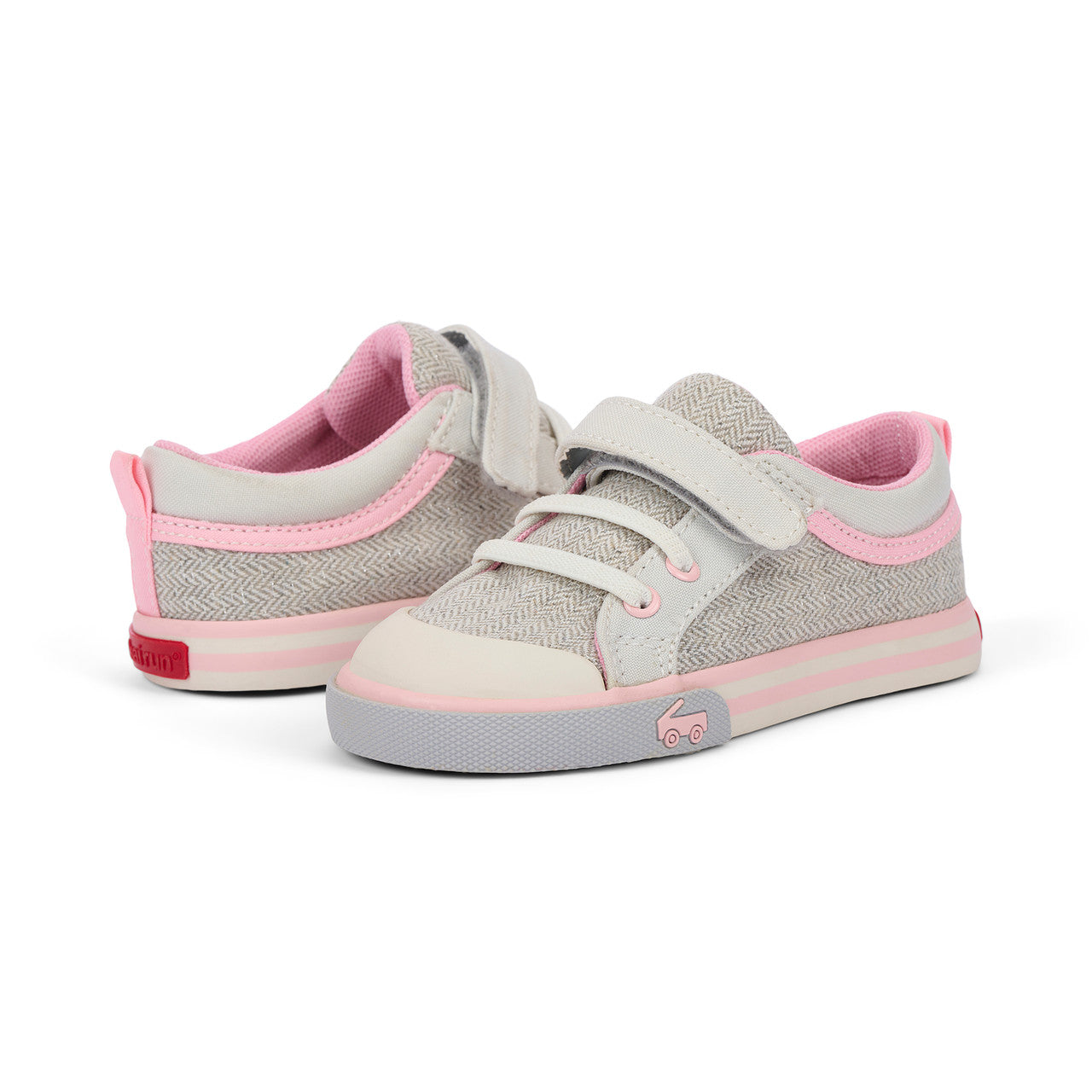 Sweet pink teams with soft gray herringbone fabric to take our classic Kristin to a new level of style. Includes 100% leather lined removable molded footbed for healthy foot climate. Natural rubber toe cap for added protection. Lightweight and flexible with a wide opening for easy on and off
