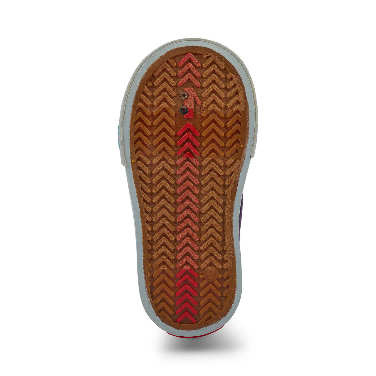 Natural rubber outsole with herringbone lug pattern provides great traction for play.