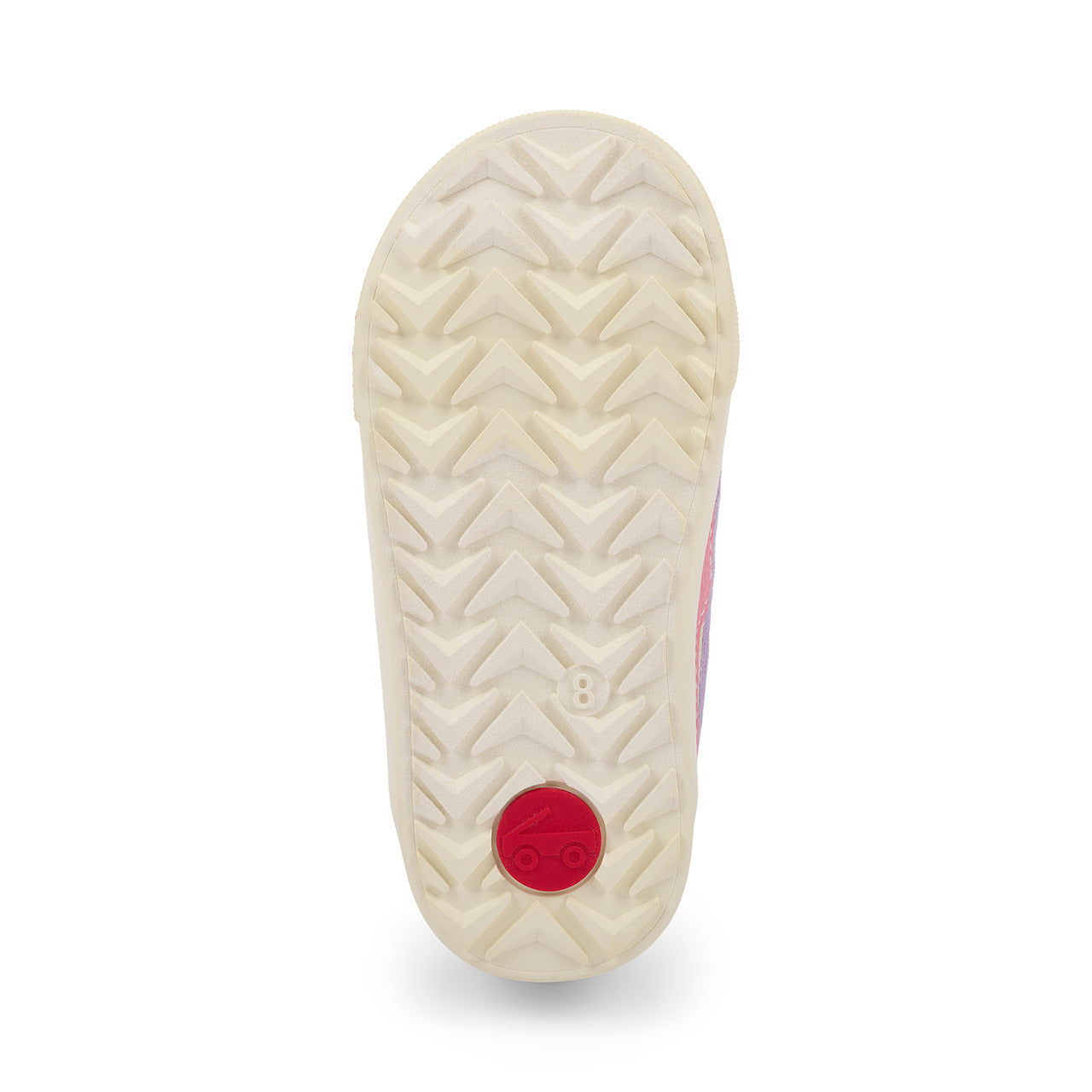 Natural rubber outsole with herringbone lug pattern provides great traction for play.