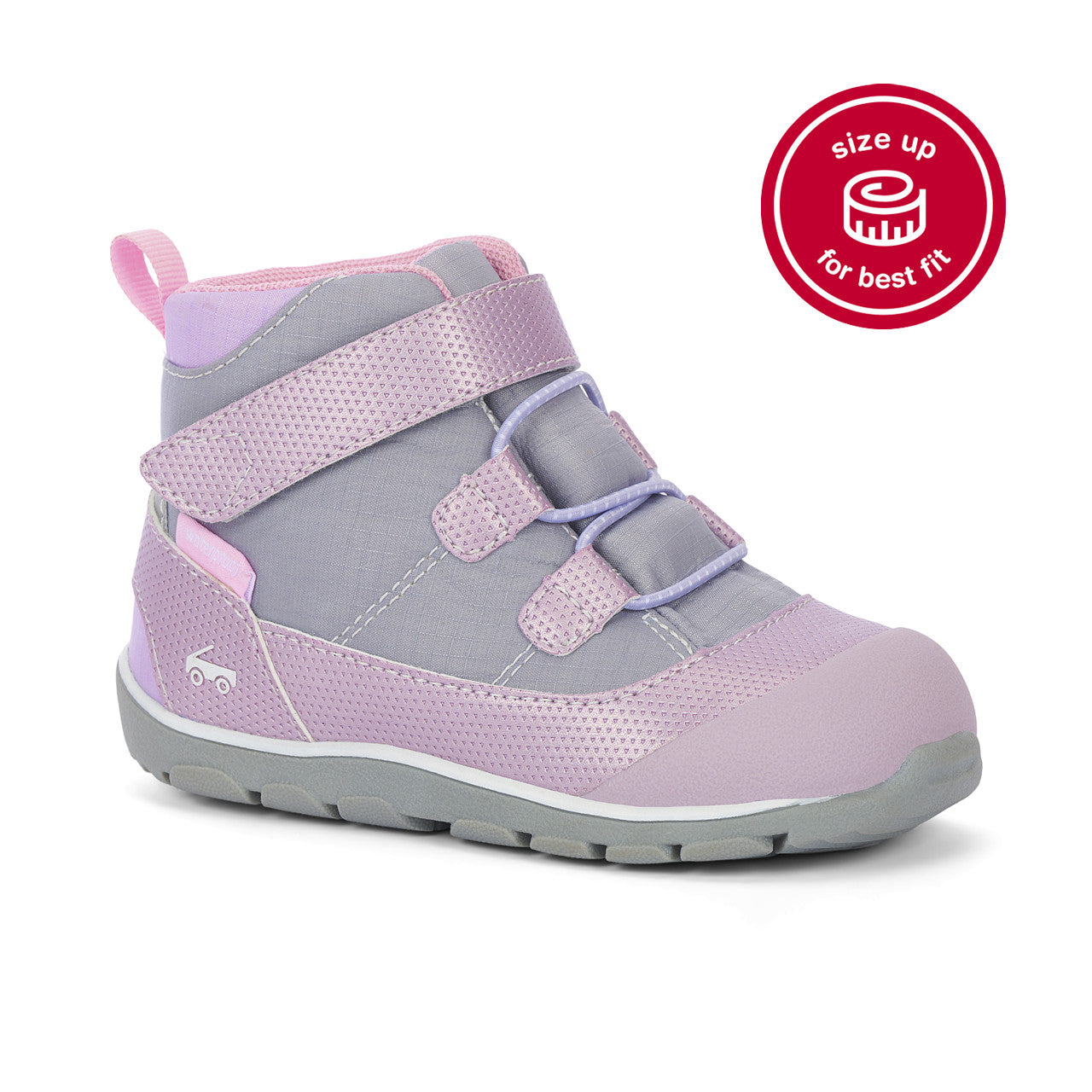 Winter adventures have met their match with the durable and protective Sam boot. Featuring a mix of gray and mauve, this stylish waterproof essential is made to keep water and debris out, warmth and comfort in, and provide maximum grip on slippery surfaces.