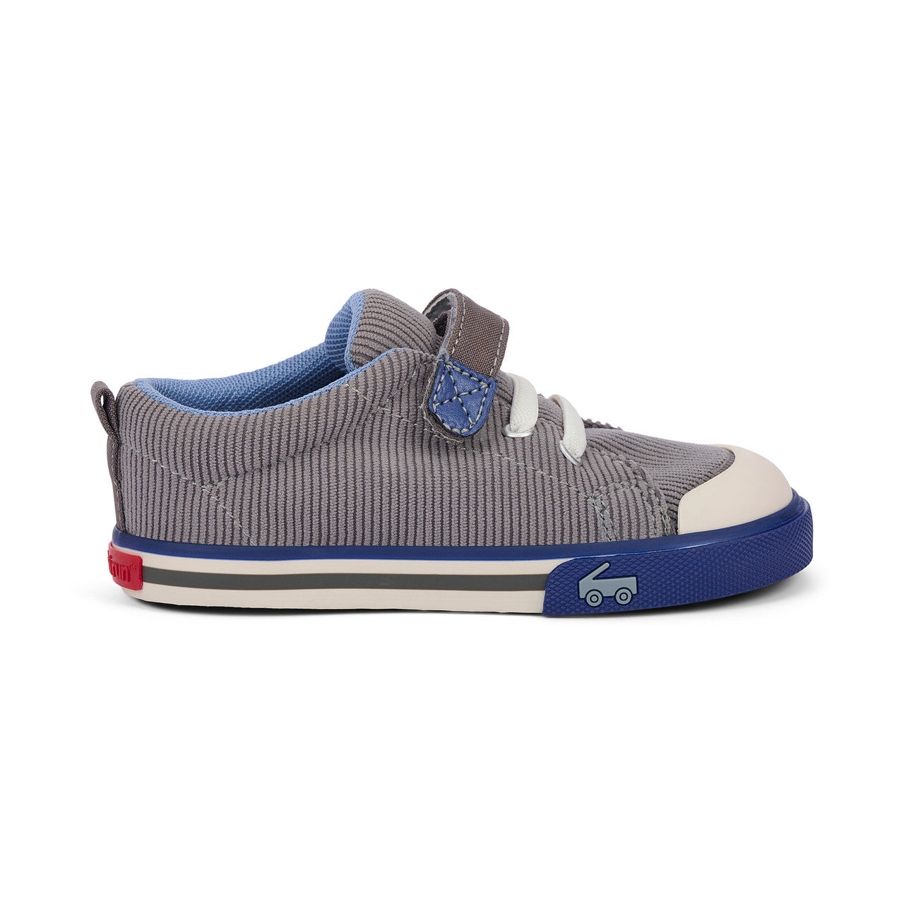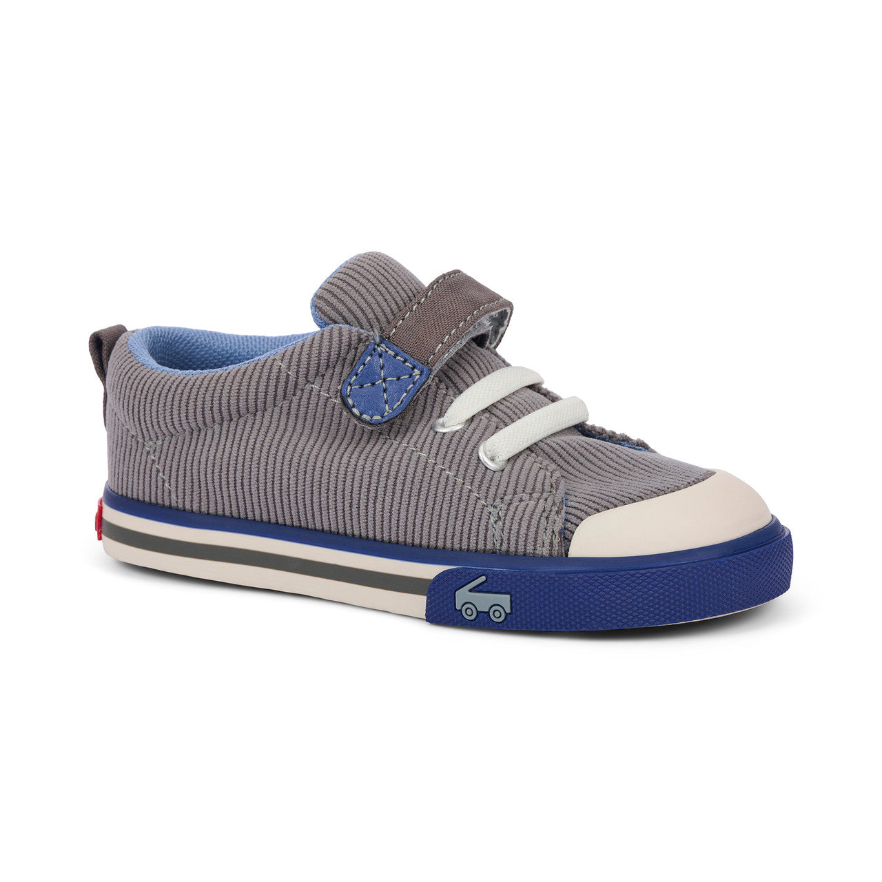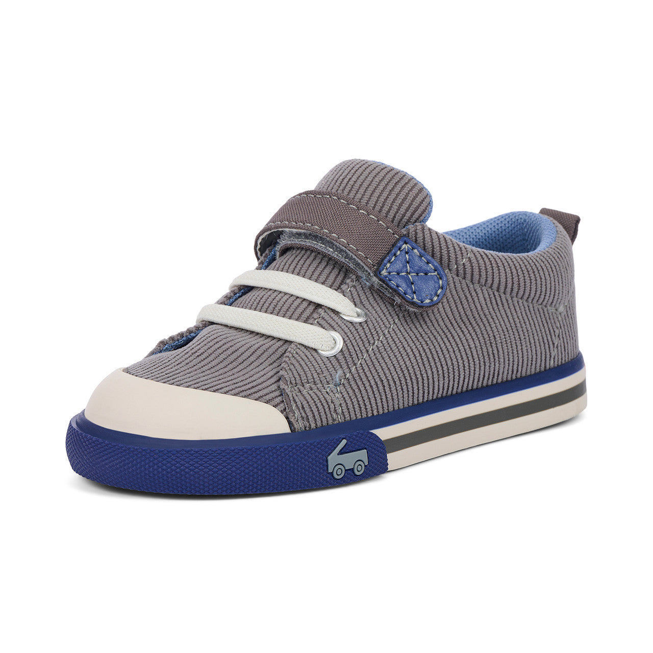 Playground days have met their match with our flexible, protective, and oh-so comfy Stevie sneaker. Designed in cozy gray corduroy with pops of blue, plus a contoured footbed that feels like it was made just for their feet, this pair is ready to bring the fun.
