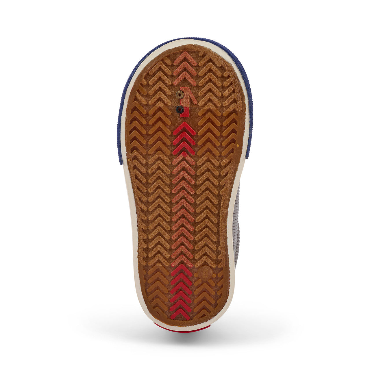 Natural rubber outsole with herringbone lug pattern provides great traction for play.