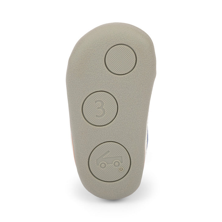 Recycled TPR full rubber outsole provides flexibility, traction, and durability for early steps.