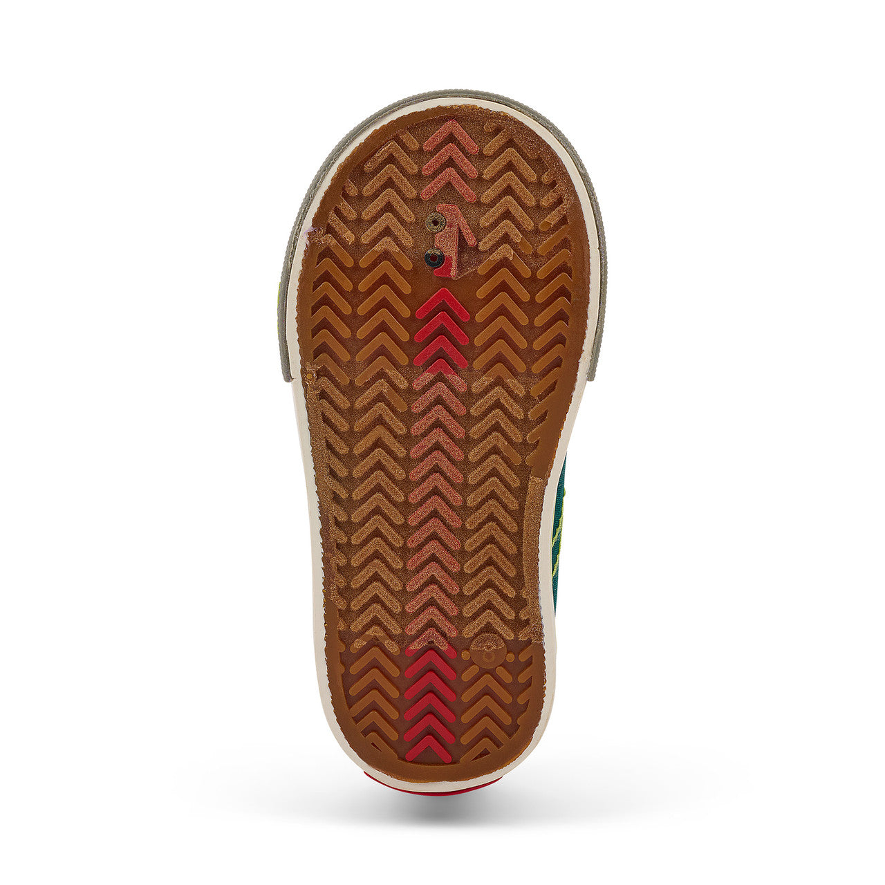 Natural rubber outsole with herringbone lug pattern provides great traction for play.