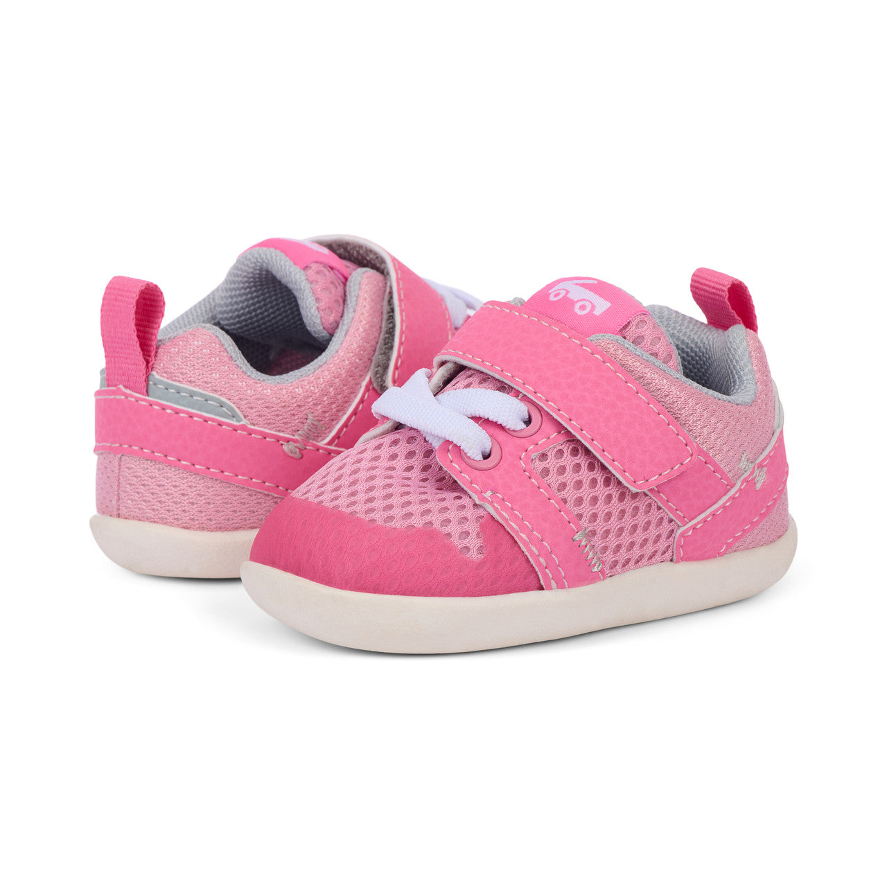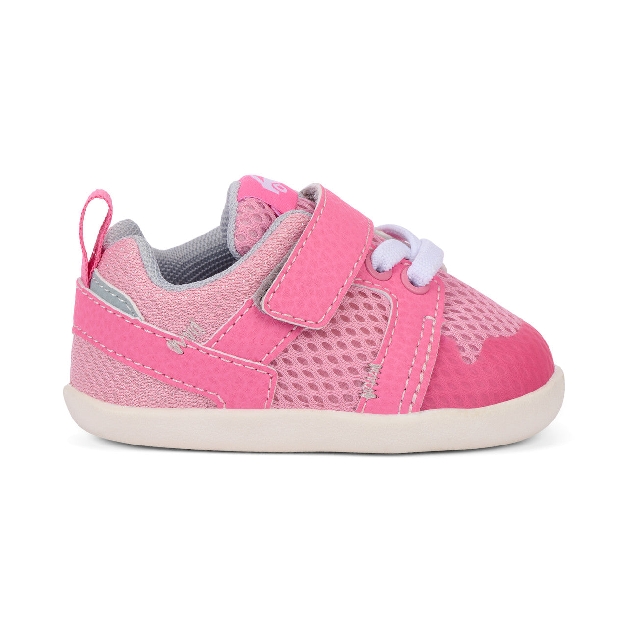 Ready, set, go! The Viento athletic first walker in pink is here to support her every sprint, stumble, and step. Engineered to be lightweight and flexible, and equipped with breathable mesh inside and out, it brings nonstop comfort to her newly active lifestyle.